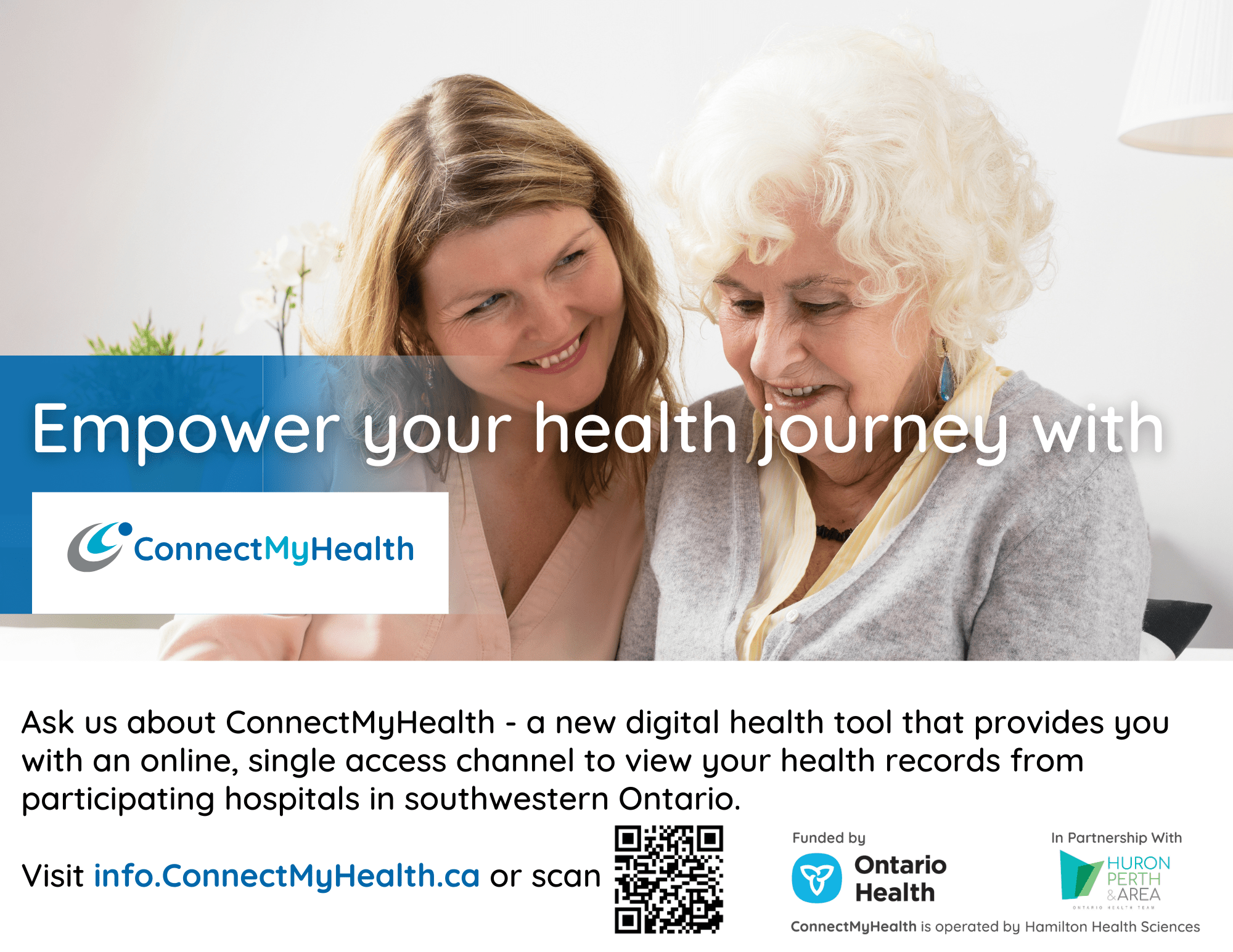 [Your Organization’s Name] and the Huron Perth & Area Ontario Health Team (HPA-OHT) would like to inform you about ConnectMyHealth—a secure digital health solution that provides patients across our region with easy access to their health records from participating hospitals.